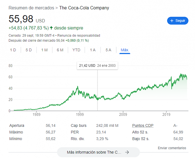 Si miramos la típica empresa que año tras año gana más dinero, como es Coca-Cola: