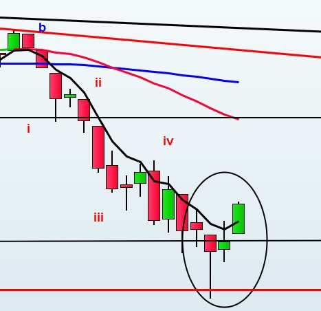 2º) La corrección ha llegado a la zona de soporte de onda 4 de grado inferior , y ha aparecido figura de vuelta (martillo) en diario y semanal y con volumen (manos fuertes + PPT ?) , y divergencias .Además de que el rebote se ha producido también en zona de soporte dinámico (media 200 semanal).