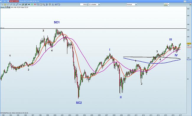 La figura de Allianz , es un poco irregular , pero si pierde el 135 el objetivo de caida habría que situarlo cerca del 80 . Un 45% desde precios actuales