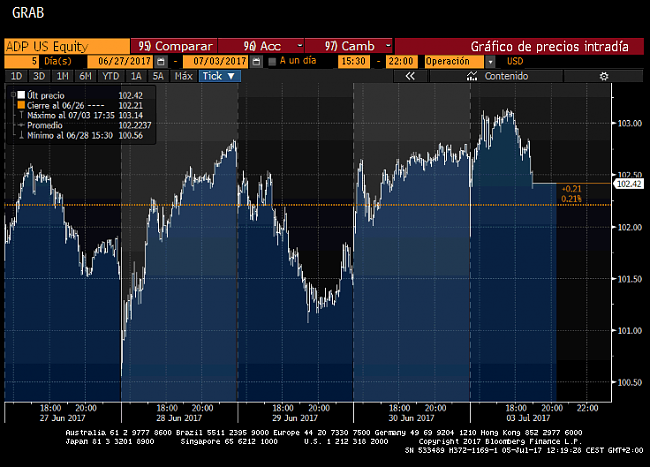 No es así jokiner18, el pasado día 3 la bolsa americana cerró a media sesión, y ayer fue fiesta. Cómo puedes ver en los pantallazos, la acción si que ha estado cotizando. Igual hay algún problema en bolsia con la carga del valor.duda-adp.png